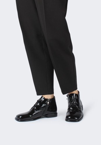 Дезерты Tuffoni — это стильное решение для женщин, ценящих элегантность и комфорт. Представлены в благородном черном цвете, идеально подходящем для осени и весны. Верх обуви изготовлен из натурального лака, что придает им особый блеск и выразительность. Этот материал обеспечивает не только внешнюю привлекательность, но и защиту от легкой влажности, что особенно важно межсезонье. Подкладка выполнена из натуральной кожи, обеспечивающей превосходную циркуляцию воздуха и комфорт в течение всего дня. Эти дезерты станут универсальным элементом гардероба, добавляя стильный акцент в любой образ.